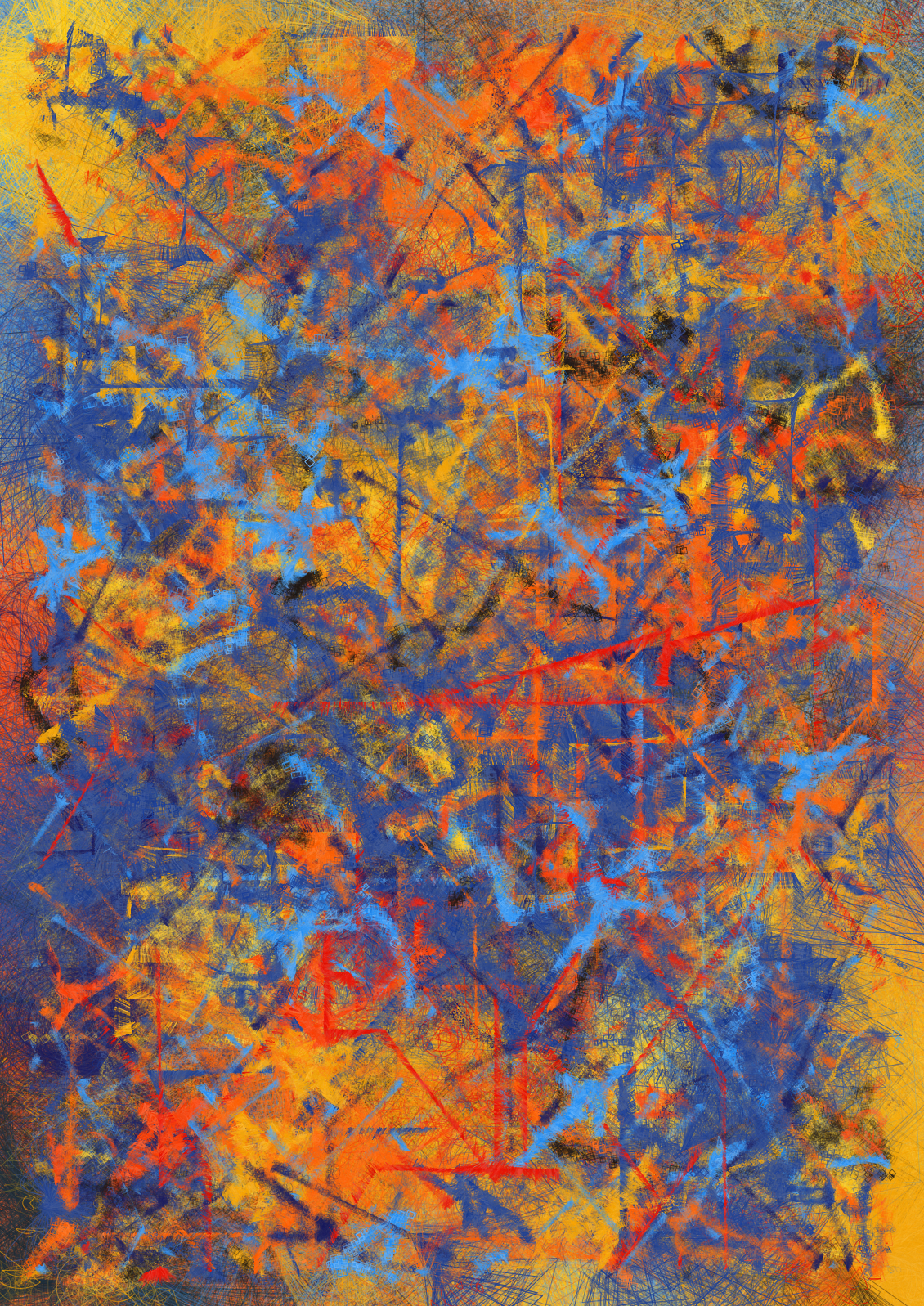 Inspired by the works of artists such as Jackson Pollock and Joan Mitchell, 'Pile' invites us to contemplate the rich and multifaceted nature of life, and to celebrate the distinctive stories that each of us carries within. Through its vivid abstraction of life's controlled chaos, and the tension between organic lines and overtly digital marks, 'pile' beckons us to consider the intricacies of our own layered identities and to revel in the diversity of life.